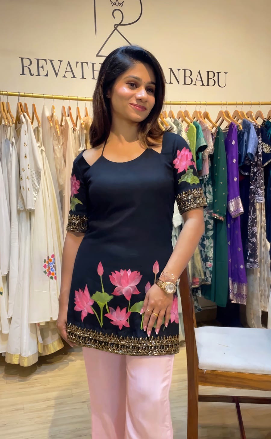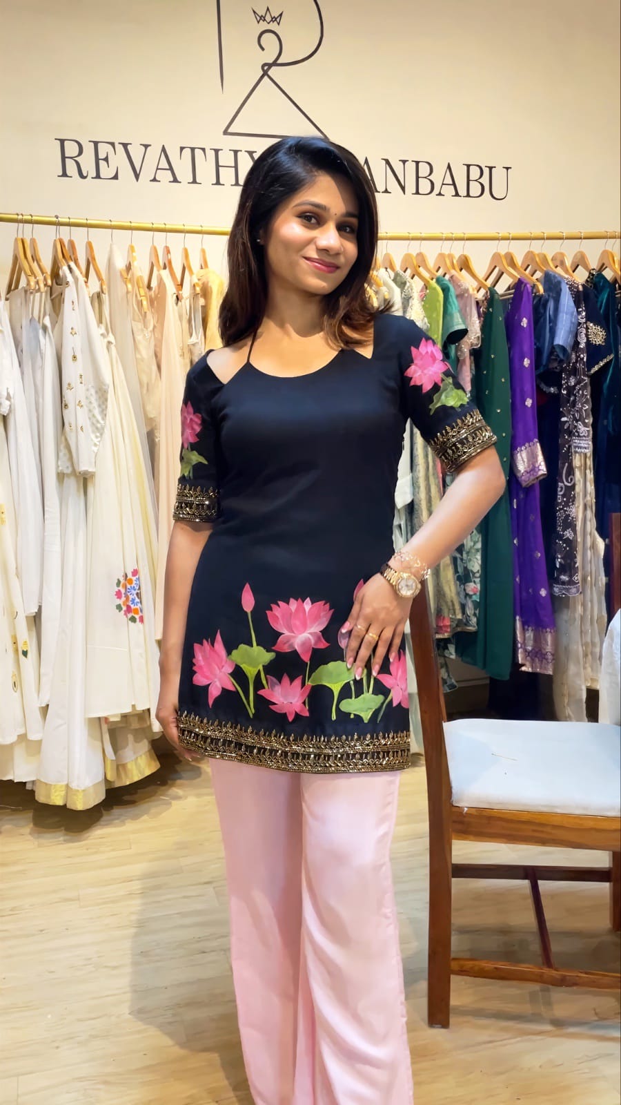 - Artistic placement of lotus motifs along the hemline and sleeves , enhancing visual balance.